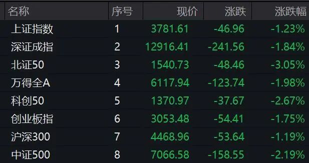 早盘时,A股整体处于震荡调整状态。上证指数盘中跌破3800点,深证成指一度击穿13000点,创业板指失守3100点,科创50也未能守住1400点。市场上超4900只个股下跌,且成交呈放大趋势。