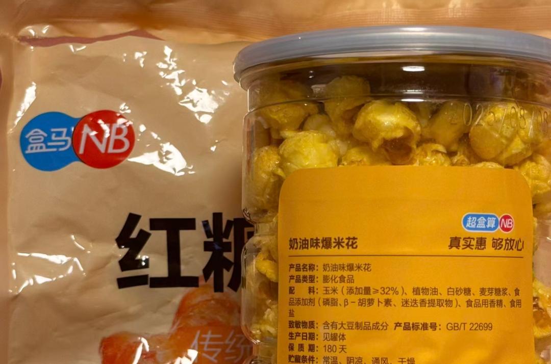 前几天,有人躺在沙发上看剧时,拿了些盒马小零食,发现上面都印着大大的“超盒算NB”。一查才知道,“超盒算NB”自有品牌的销售占比已达60%。