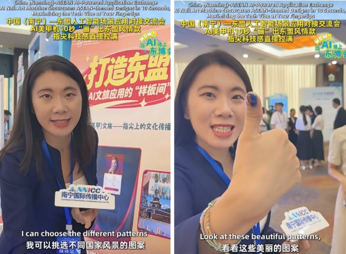在本次展会上,云澎科技精心打造的AI智能健康美甲机成为文旅出海的明星产品。该设备不仅能通过指甲检测健康状况,还能生成融合东盟各国文化特色的个性化美甲设计,像越南奥黛纹样、泰国孔剧面具、马来西亚峇迪蜡染、柬埔寨吴哥窟浮雕等,让每一次美甲都成为一场文化传播的微型展览。来自老挝、柬埔寨、新加坡的领导和展商体验后表示,这让他们看到了科技与文化融合的新可能。
