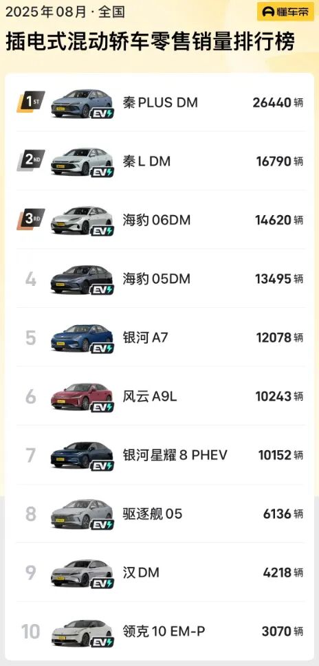 不过,不同于之前的“蒙眼狂奔”,插混车型的增速已有放缓趋势。8月,国内插混汽车销量约31万辆,同比下降8%。