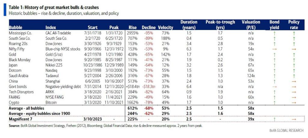 Michael Hartnett分析了自1900年以来的10次股市泡沫,发现其从低点到顶点的平均涨幅为244%,泡沫顶点的平均动态市盈率高达58倍,且股指会高出其200日移动平均线29%。