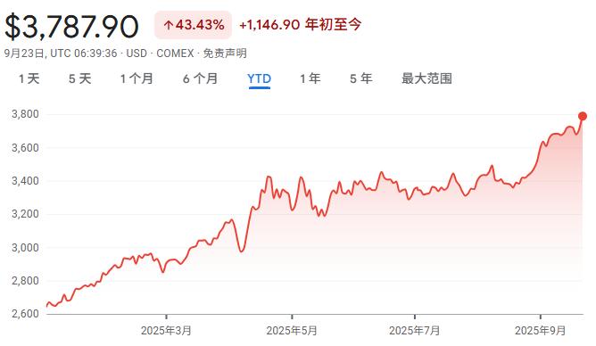 COMEX黄金价格在周一收盘在3775.10美元,创下年内第36个收盘历史新高,经通胀调整后的黄金价格已超过1980年1月的高点。今年以来,金价累计涨幅已达约43%。