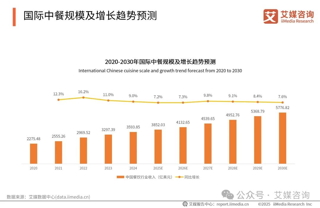中餐出海是趋势。艾媒咨询数据显示,2020 - 2024年国际中餐市场规模从2275.48亿增长到3593.85亿,预计2030年达5776.82亿,火锅等中餐品类在海外受欢迎。