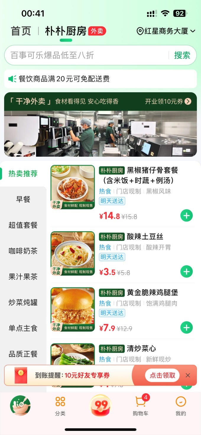 朴朴厨房采用自营模式,主打“食材鲜配,现制现售”,价格亲民,一份中式米饭套餐大多在13 - 20元以内。这与京东七鲜小厨的“品质化”路线、美团浣熊食堂的集合式外卖场地模式形成差异。