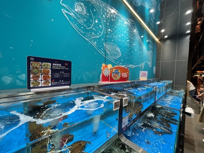 卖场布局融合“海洋风情”与“国际甄选”。海鲜区有帝王蟹等高端海鲜和本地特色海鲜,蔬菜区打造“水八仙矩阵”和“花青素矩阵”,契合闽南饮食文化。