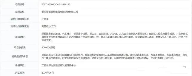近日,一条串联赣皖两省、贯通南昌都市圈的高速大动脉传来重磅消息——鄱阳至都昌至南昌高速公路新建工程已完成备案,计划2026年6月破土动工。