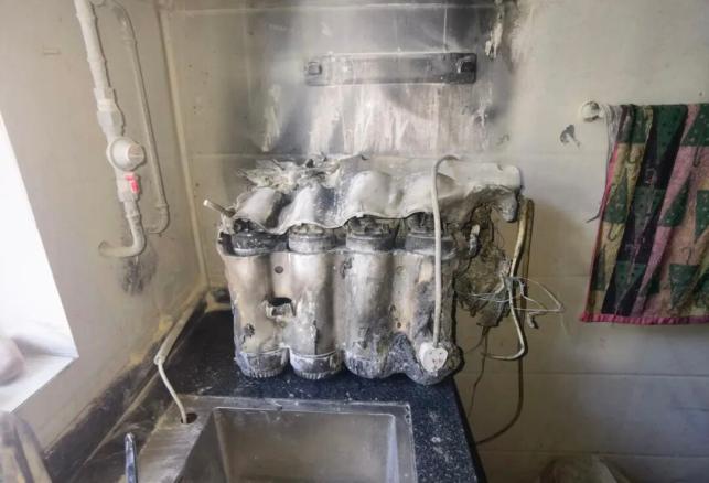 消防救援人员立即赶赴现场开展灭火救援。经调查,起火原因为厨房壁挂式净水器电气故障引发火灾。