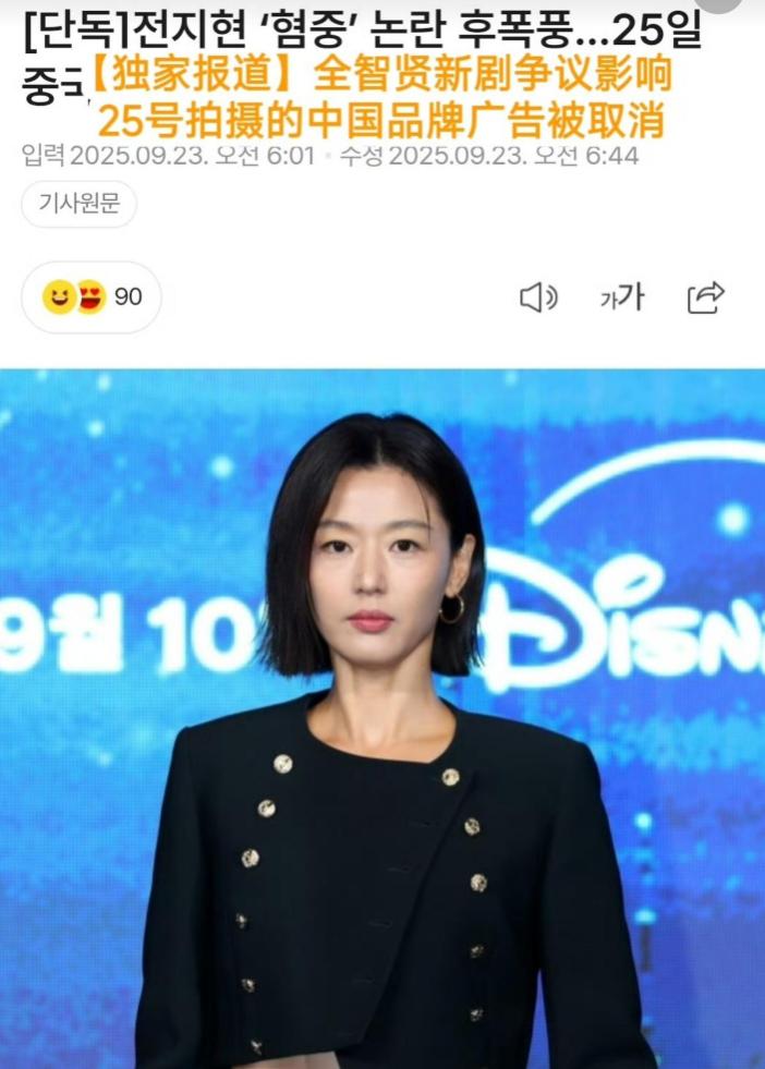 直到近日,随着风波进一步扩大,全智贤才通过经纪公司就代言问题作出回应。据韩国媒体报道,全智贤此次回应是因为《暴风圈》台词争议未平息,还导致一家原定邀请她代言的中国服装品牌取消了25日在首尔拍摄广告的计划。