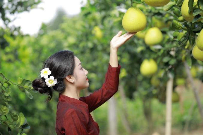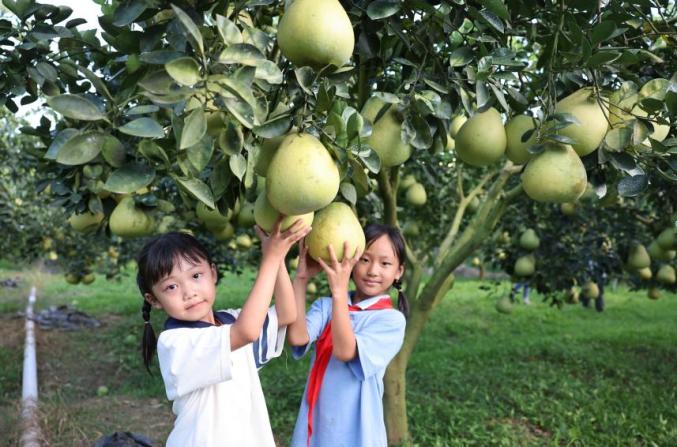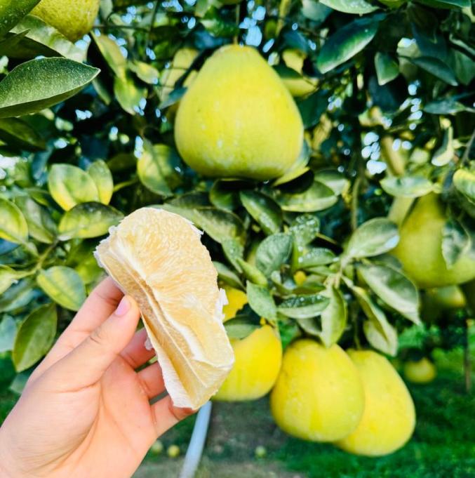 果农们欢快地穿梭在柚子林间,忙着采摘,脸上满是藏不住的笑意。