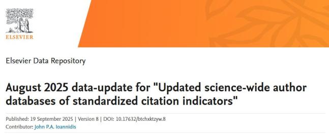 近日,斯坦福大学(Stanford University)和国际权威学术出版社爱思唯(Elsevier)共同发布了2025年全球前2%顶尖科学家榜单(World's Top 2% Scientists)。