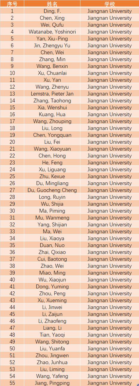 江南大学表现出色,有55名科学家入选“终身影响力”榜单,192名科学家入选“年度影响力”榜单,位居内地高校第46名!