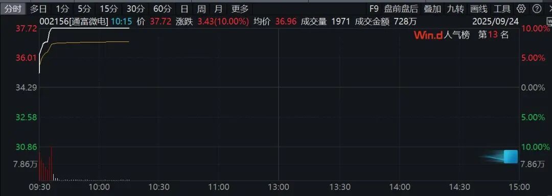 半导体产业链呈现全线拉升态势。存储芯片概念股表现活跃,其中通富微电(002156)直线拉升并涨停。