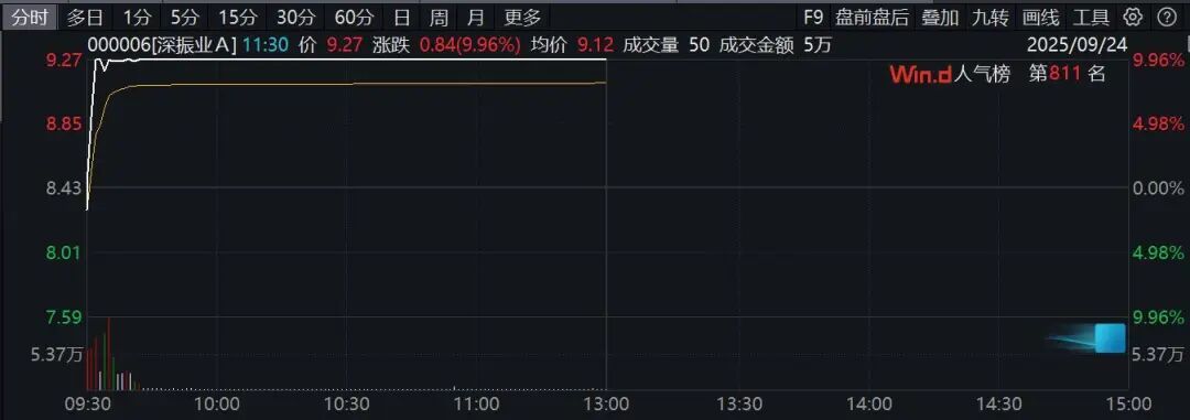 房地产股早盘集体走强,板块指数盘初一度放量直线拉升,涨幅逾3%。深振业A开盘仅约2分钟就垂直涨停,股价创下年内新高,云南城投、渝开发、上海临港、张江高科等也纷纷直线涨停,并创阶段性新高。