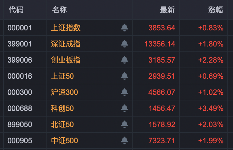 今日,A股呈现低开高走态势,科技股表现十分活跃。其中,科创50盘中一度大涨逾5%,再创3年半新高,深证成指、创业板指等也均创出多年来新高。超4500只个股上涨,不过成交小幅萎缩至2.35万亿元。