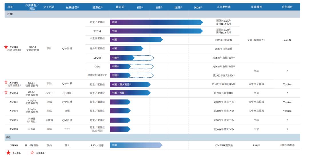 公司核心产品埃诺格鲁肽注射液(XW003)是备受关注的“明星”。目前,XW003 接近商业化,有望成为全球首个获批并具卓越疗效的 cAMP 偏向型 GLP - 1 受体激动剂,可用于治疗超重/肥胖症、2 型糖尿病等多种适应症。