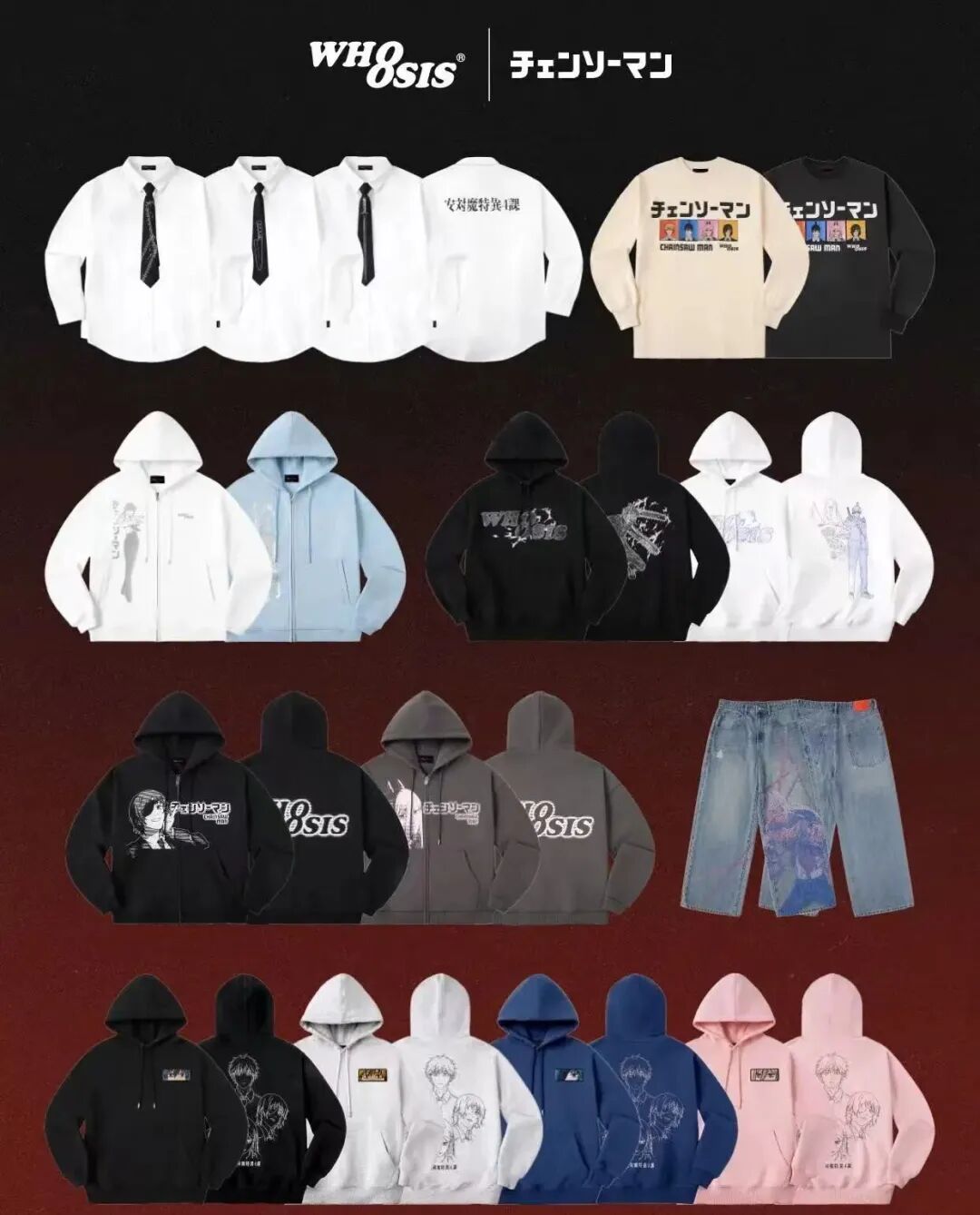同样的情况也发生在近期WHOOSIS与电锯人的联动中。这次联动在粉丝中关注度很高,产品定价100元到300元相对亲民,但发售成绩不理想,核心问题是设计“不够味”。《电锯人》原作充满暴力美学和荒诞叙事,而店内款式设计普遍基础,难以凸显原作气质。