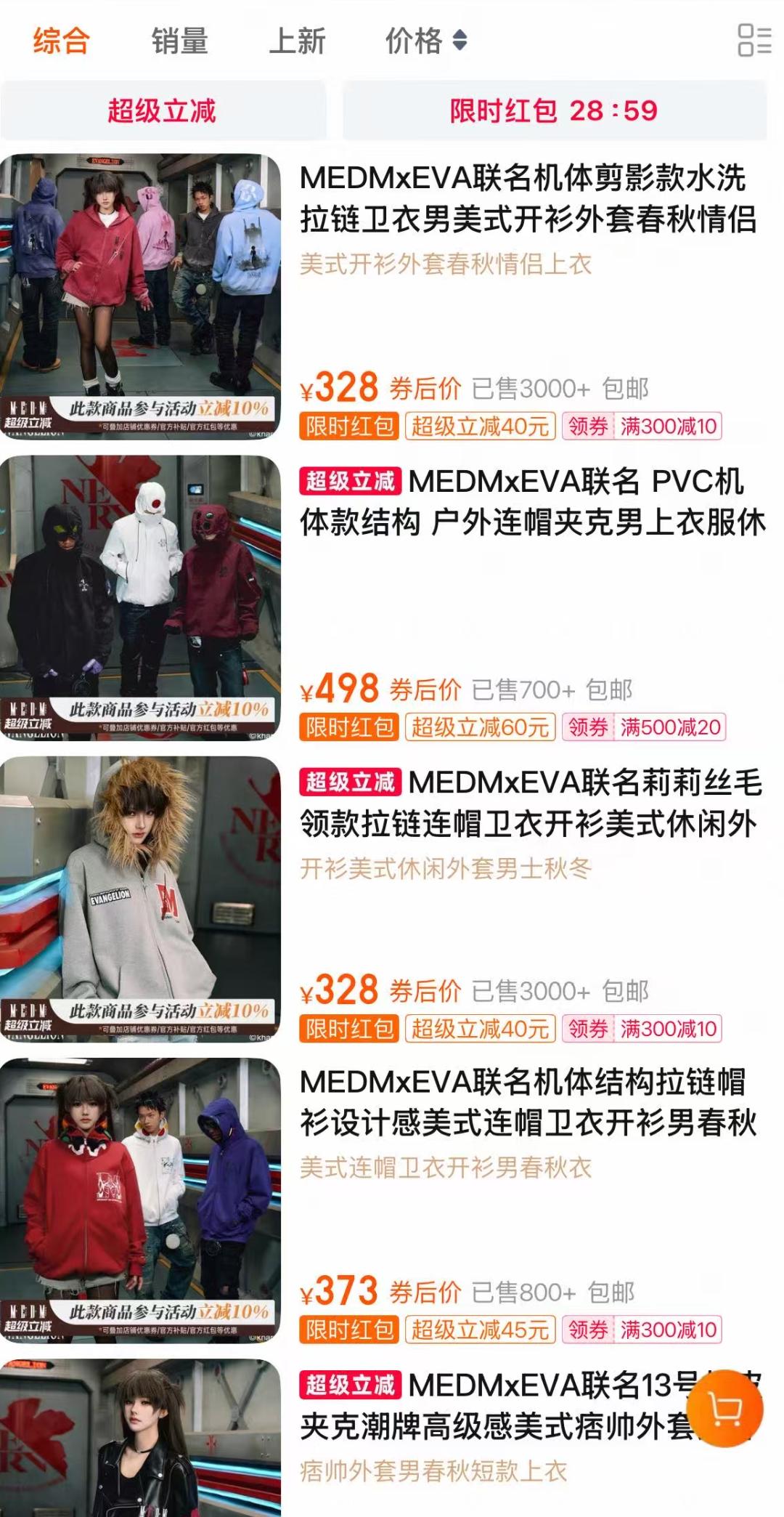 说唱歌手KnowKnow创立的美式街头品牌MEDM,近两年与初音未来、EVA等知名ACG IP进行了联名。其中EVA联名服饰已推出第三弹,是MEDM所有ACG IP联名中销售最好的系列,多个款式在抖音、淘宝平台卖出数千件,粉丝讨论热度也较高。
