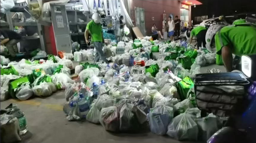 然而,备货充足未能完全解决问题,运力短缺成为突出瓶颈。深圳闪电仓出现骑手排队取货的场景,部分骑手主动协助商家打包;京东、饿了么等平台紧急推出差评免责、延长配送、暴雨补贴等措施,还为骑手配备专业雨衣和应急装备。