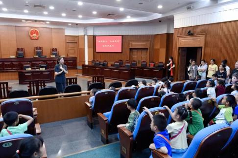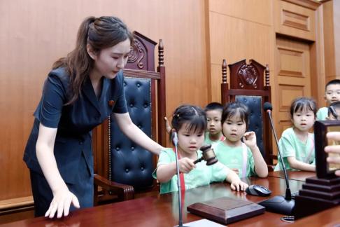 稚嫩的童声出现在法庭内,这是北京一中院联合北京十一学校幼儿园开展的“法润童心 与法同行”法院开放日活动,北京十一学校幼儿园90余名师生走进法院,“零距离”了解法院工作,“沉浸式”体验法院文化。活动中,干警为小朋友们生动介绍了关于法庭、法徽、法袍的知识,孩子们在法台上敲击法槌,感受司法的神圣和威严。