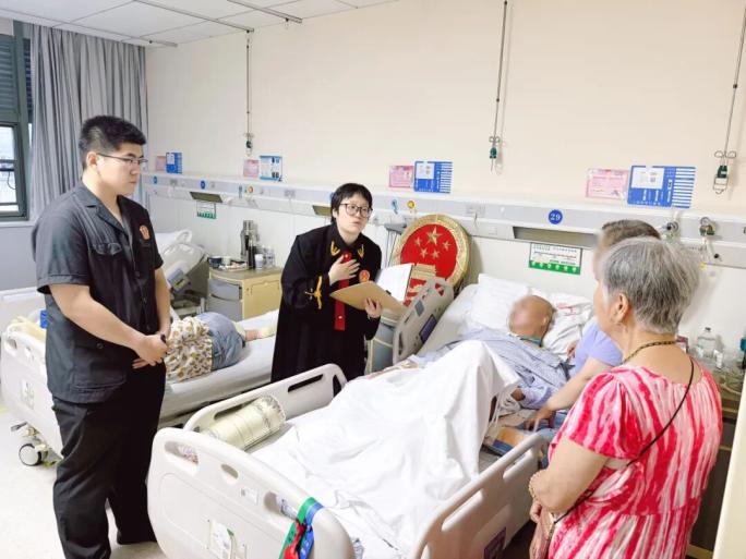 “真是太感谢了,没想到你们能来这儿!”在医院,董大爷的老伴田老太见到昌平法院回龙观法庭的干警们,脸上难掩激动。董大爷因交通事故导致重伤,四肢瘫痪且生活不能自理,医疗费用高昂,但肇事者不断推诿,让董大爷一家陷入困境。为了后续诉讼和主张赔偿,田老太向法院申请宣告丈夫为无民事行为能力人,并申请自己作为监护人。孙豫萍法官了解情况后,与医院沟通后决定将法庭“搬”进病房,她向田老太和医生询问董大爷受伤经过和当前病情,并充分听取董大爷其他近亲属意见。最终,法院认定董大爷为无民事行为能力人并指定田老太为监护人,充分保障了被监护人的合法权益。