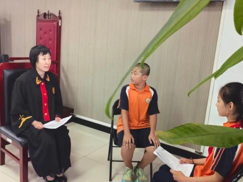 延庆区沈家营小学的同学们应邀来到延庆法院沈家营法庭参与法治实践活动,大家在法官的引导下,通过角色扮演、庭审模拟和集体宣誓,沉浸式体验司法流程。模拟庭审结束后,法官与学生扮演的“家长”展开“家庭教育指导”,强调家庭在预防校园欺凌中的重要作用。活动最后,学生们庄严宣誓:“拒绝欺凌,争做守法小公民!”铿锵有力的誓言在法庭回荡,这场沉浸式的体验也在大家心中埋下了法治的种子。