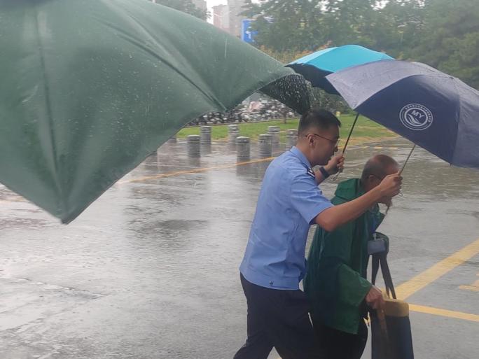 “这雨太突然了,谢谢你小伙子。”一名年过八旬的老大爷因案件问题来到法院,司法警察代强在与其沟通过程中突降大雨。为避免大爷淋雨,代强引导其前往法警值班室避雨,并递上热水。在值班室内,又耐心倾听大爷的诉求与顾虑,同时积极告知其合理的诉求表达途径与解决流程,引导其通过合法方式维护自身权益。