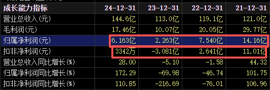 2021 - 2024年,华天科技营业收入从121亿元缓慢增长至144.6亿元,但净利润呈下降趋势,从14.16亿元降至6.16亿元;扣除非经常性损益后,净利润从11亿元跌到3342万元,其中2023年扣非净利亏损3.08亿元。