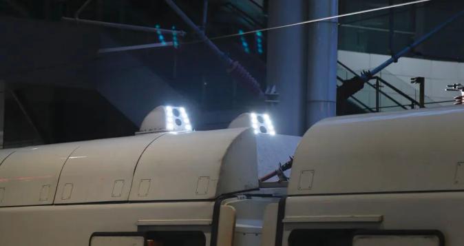 受电弓监控装置上有两排补光灯,有些是常亮状态,有些则通过快速闪烁为监控装置补光,确保监控画面清晰。这时,旅客朋友看到的动车组就是“一闪一闪”的。
