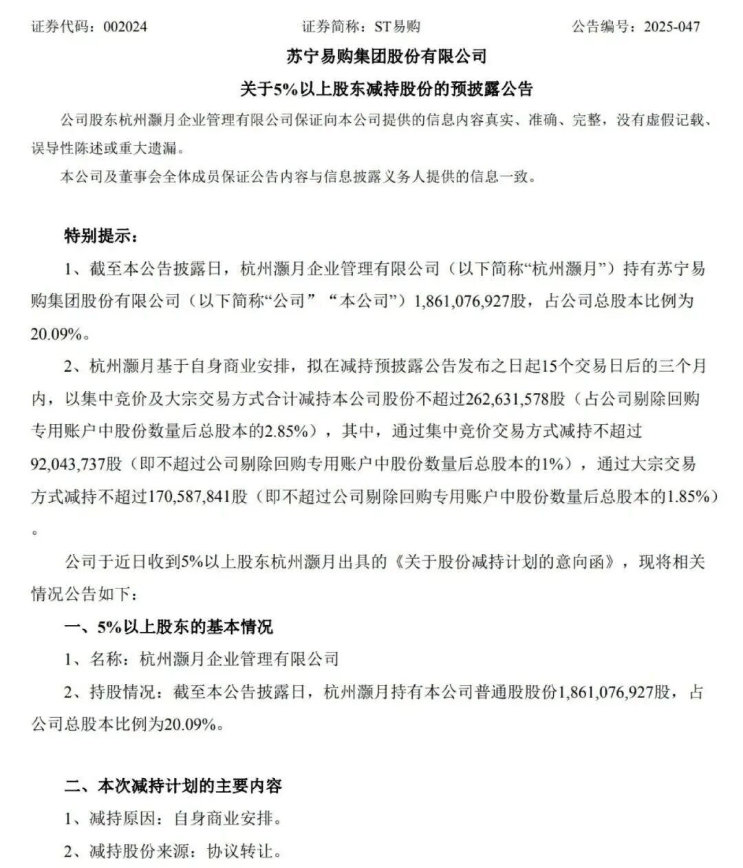 同时,阿里在投入AI的同时,加速退出非核心资产。9月22日晚,苏宁易购公告称,阿里拟减持其股份,预计减持所得约4.9亿元。