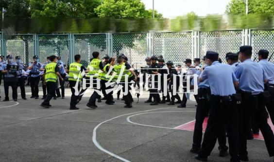 此次演练以监区日常管理中的潜在风险为蓝本,以“罪犯集体哄闹”为演练科目。监区组织新收押罪犯在操场开展训练时,突发多名罪犯集体哄闹事件,部分罪犯对另外2名罪犯实施围困、推搡与谩骂,现场秩序混乱,事态有进一步升级趋势。