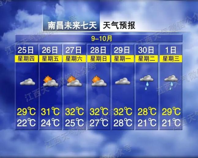 受台风“桦加沙”影响,预计今天,赣中、赣南阴天间多云有阵雨,部分地区有中雨;赣北阴转多云,局部地区有阵雨。明天,全省多云转晴,局部山区有阵雨或雷阵雨。