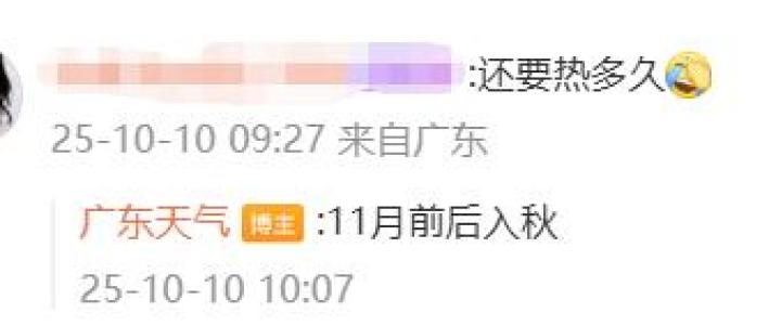 不少网友关心冷空气何时到来,广东何时入秋。据@广东天气消息,10月的广东依旧炎热,入秋大致在11月前后。