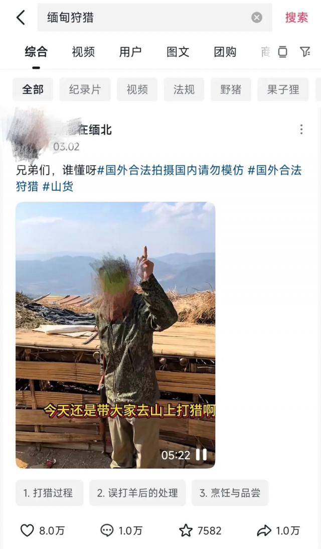 目前,前往缅甸狩猎的博主IP地址几乎都在云南,很多人来自中缅边境城市,狩猎行为多通过朋友介绍或村民带领完成。若短视频平台不及时查禁违法视频、法规对这些违法行为继续漠视,未来缅甸是否会形成针对中国人的狩猎旅游服务,尚未可知。