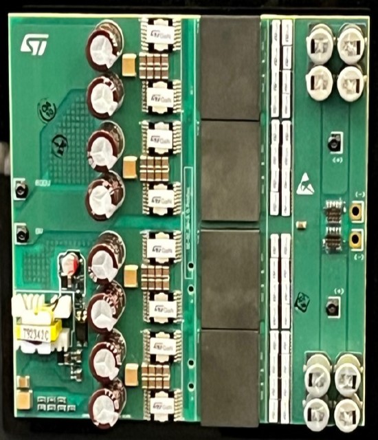 这一级的技术难点在于空间有限,需要在极小的空间内满足98%以上的转换效率以及安规要求,因此变换器的开关频率需要达到1MHz左右以减小变压器磁芯的体积,同时还需要在有限的空间内放下为驱动和主控供电的辅助电源。