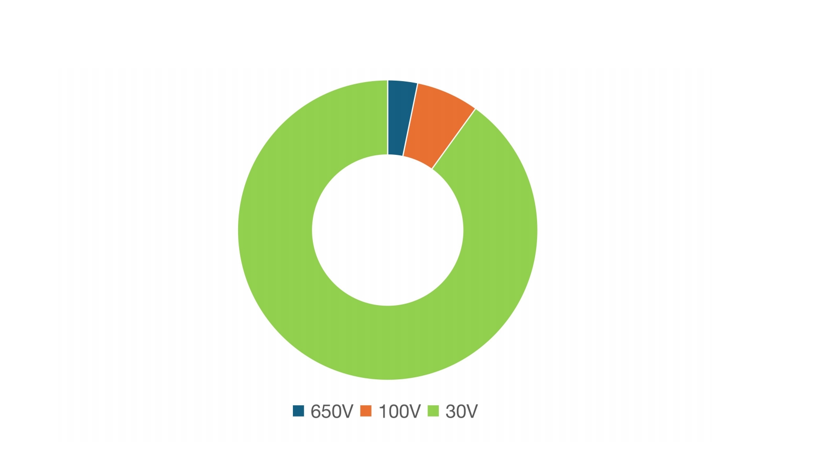如上图所示,在800V DC架构当中,100V及30V的低压器件占比达96.8%,成为绝对赢家。