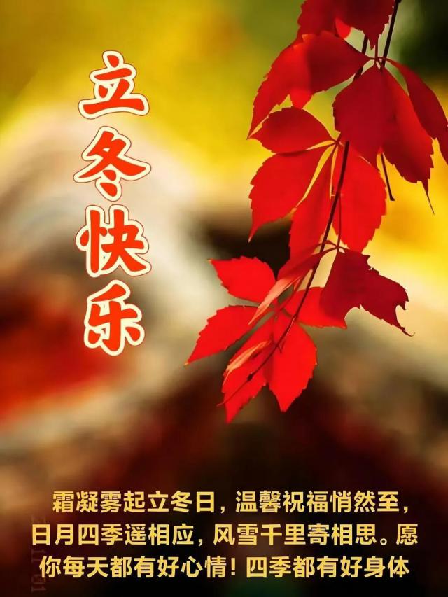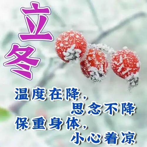 岁月匆匆,转瞬立冬;露寒霜冻,天气转冷。情谊深厚,思念心中。送上问候,劝君多运动。愿你健康幸福,一切多多保重!祝立冬快乐!