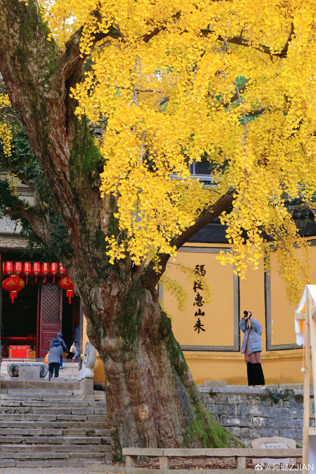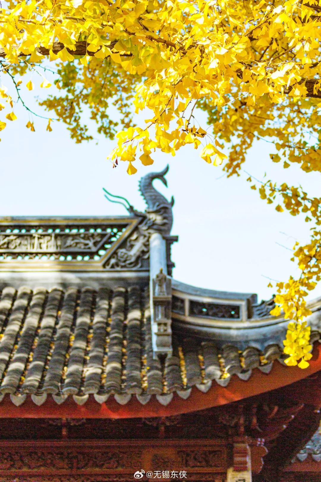 除了惠山寺,张中丞庙前经历几百年风雨的银杏古树林立,是赏惠山“叶色”的好去处,满树黄叶在阳光下黄得耀眼,诉说着久经岁月沉淀的浪漫。