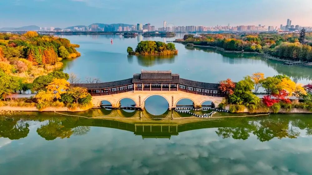鼋头渚畔,太湖烟波与红杉相映;惠山古镇的银杏铺满青瓦,与古寺飞檐共筑一场旧梦;长广溪的芦花白了头,风过处,如雪絮轻扬,为层林尽染的画卷添上最温柔的一笔。