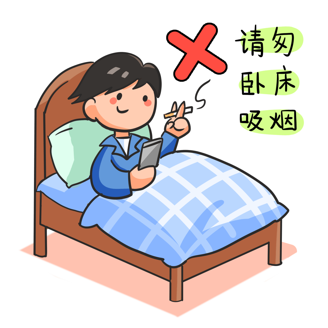 厨房用火时人不要离开,使用各类火源要与可燃易燃物品保持安全距离。提醒家人不要乱扔烟头或卧床吸烟,教育小孩不要玩火。