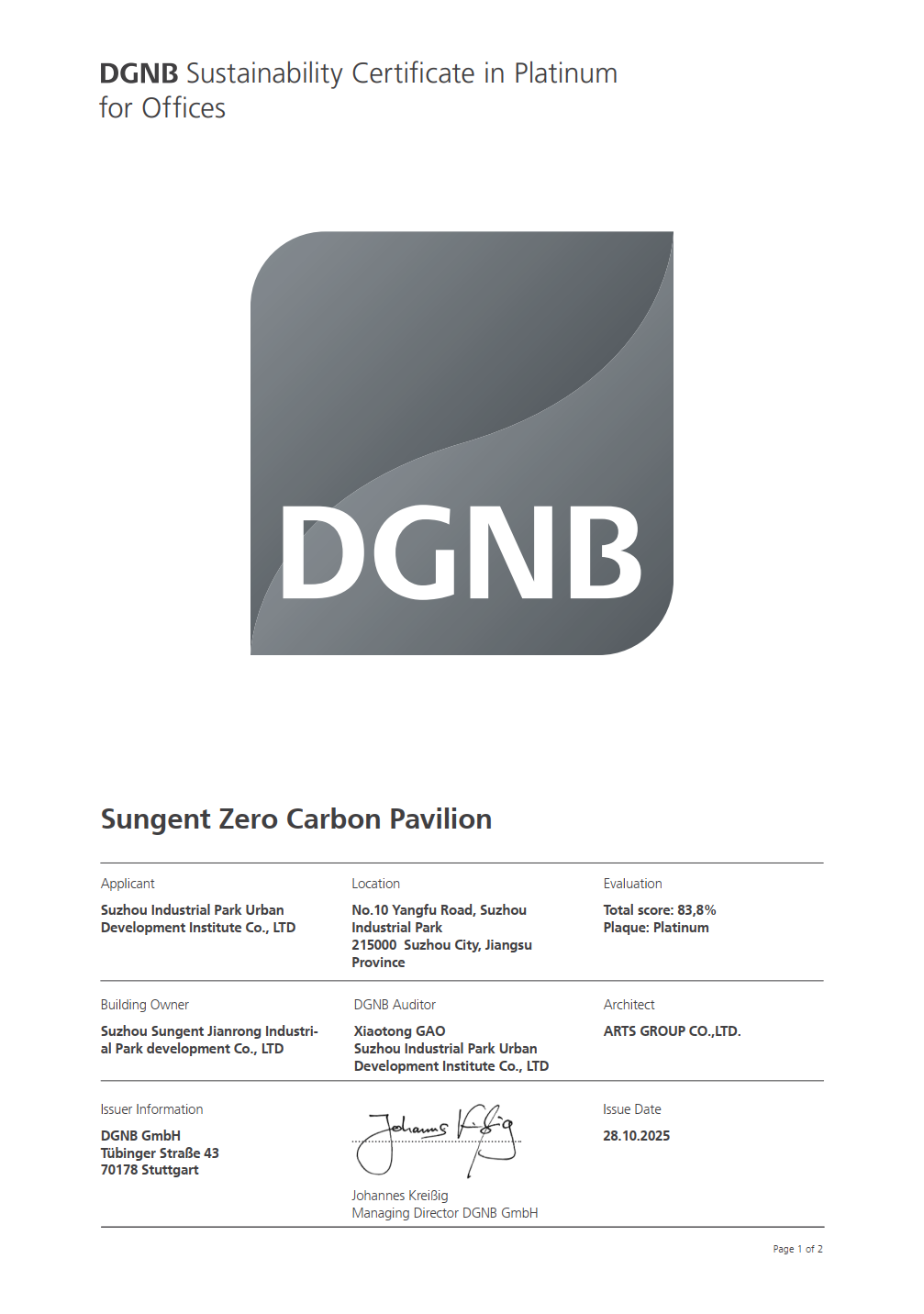 ◈新建元零碳馆项目在德国DGNB总部获铂金级建筑授牌。