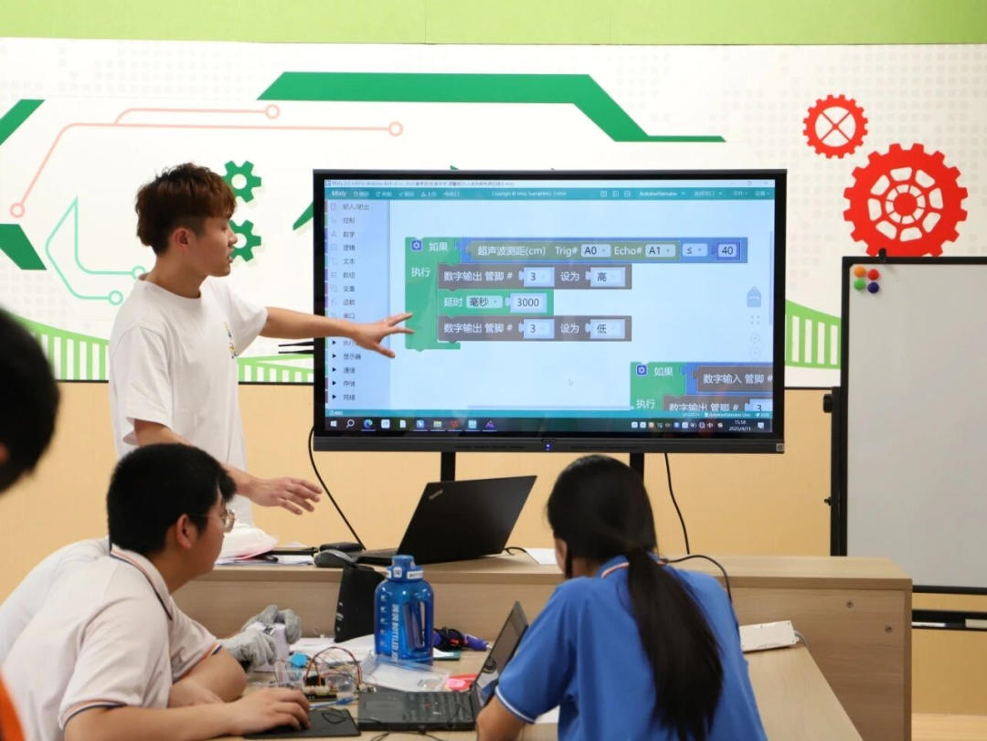 ▲杜甫中学的子美科创课上,老师带领学生们亲手制作“智能倒车雷达”系统
