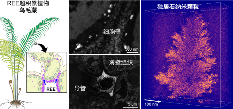 稀土元素在乌毛蕨中生物矿化为独居石纳米多晶聚集体(研究团队供图)。