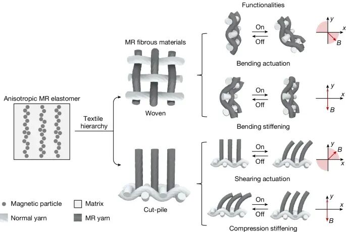 图1.具有矢量刺激响应功能的MR纤维材料示意图