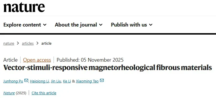 香港理工大学最新Nature:矢量磁响应纤维突破智能纺织品技术瓶颈