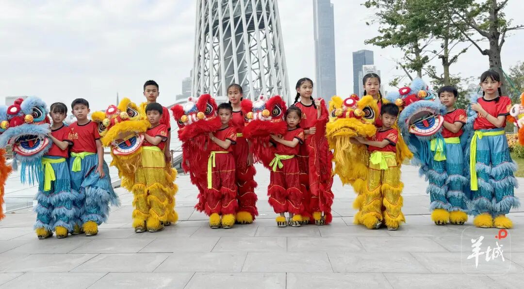刚结束完表演的猎德龙狮少年团小学员们。羊城晚报记者 吴瑕 摄