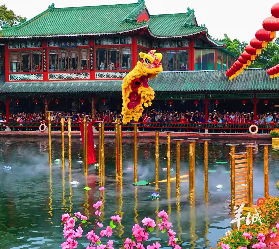 其中,最精彩的当属“采青”环节。狮子在桩上腾挪跳跃,尽显本领,最后一口吞下悬挂的生菜(寓意“生财纳福”),此时锣鼓声与喝彩声交织,满含着岭南人对生活的热爱。