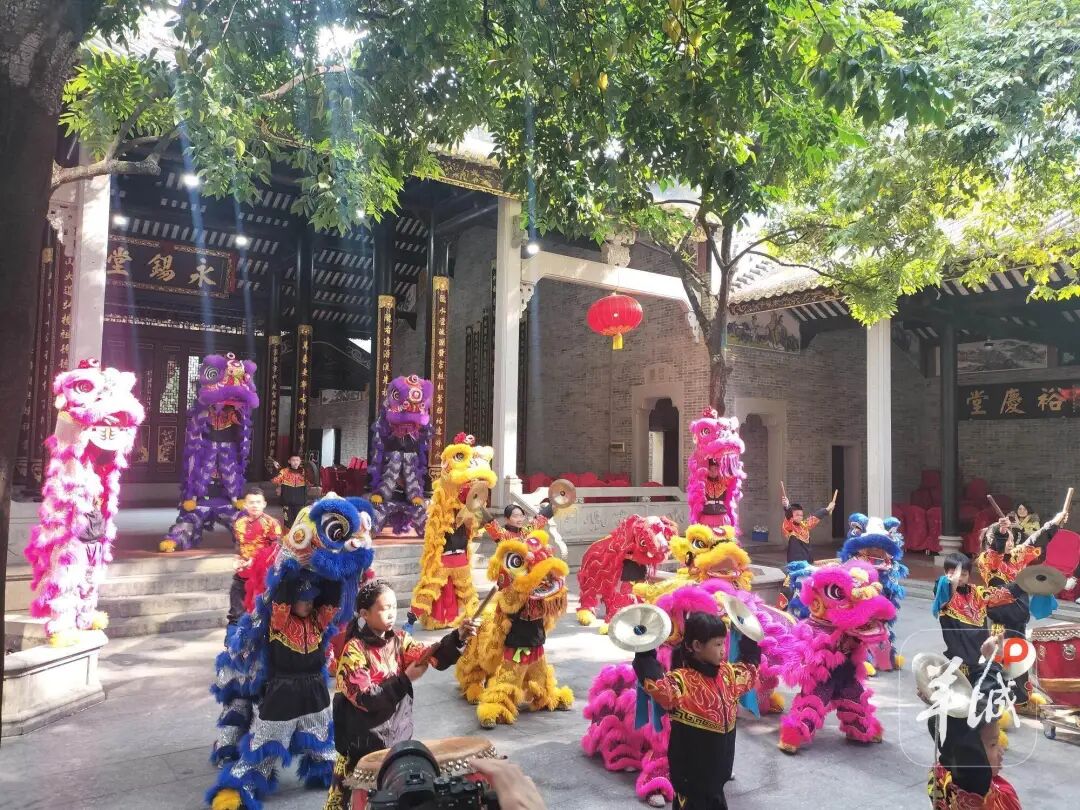 猎德龙狮少年团在李氏宗祠里练习。受访者供图