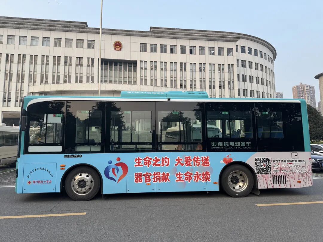 从10月开始,印有“生命之约·大爱传递,器官捐献·生命永续”主题标语和器官捐献公益图案的59路公交车正式投入运营,每天往返于荆楚理工学院和掇刀政务中心之间。该线路途经高校、居民区等人口密集区域,车身以简洁的画面和温暖的文字传递“生命因奉献而永恒”的理念,成为一个移动的宣传阵地。为期两个月的公益广告投放,以贴近群众日常出行的方式,将爱心倡议融入日常生活,增强了公众对器官捐献的认同感。