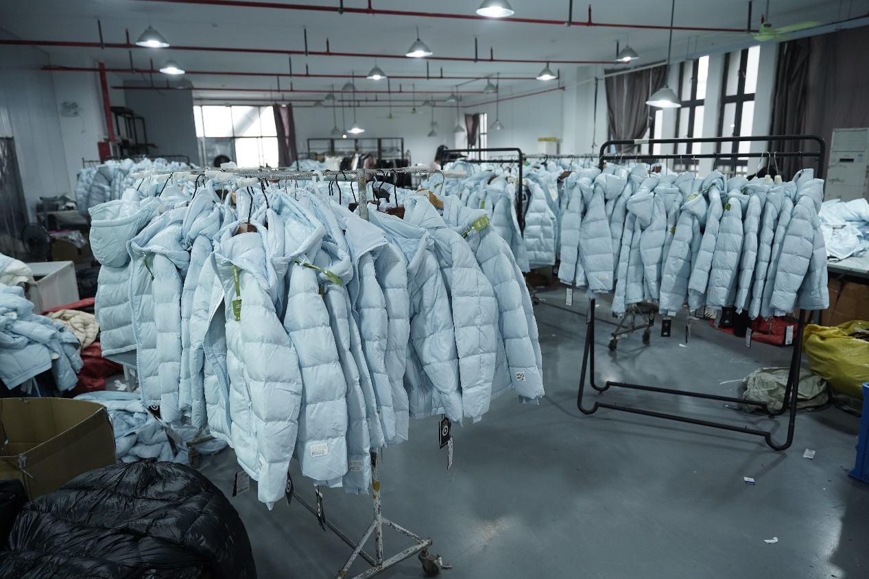 位于浙江平湖的轻薄羽绒服品牌艾菩诺鸶成品仓