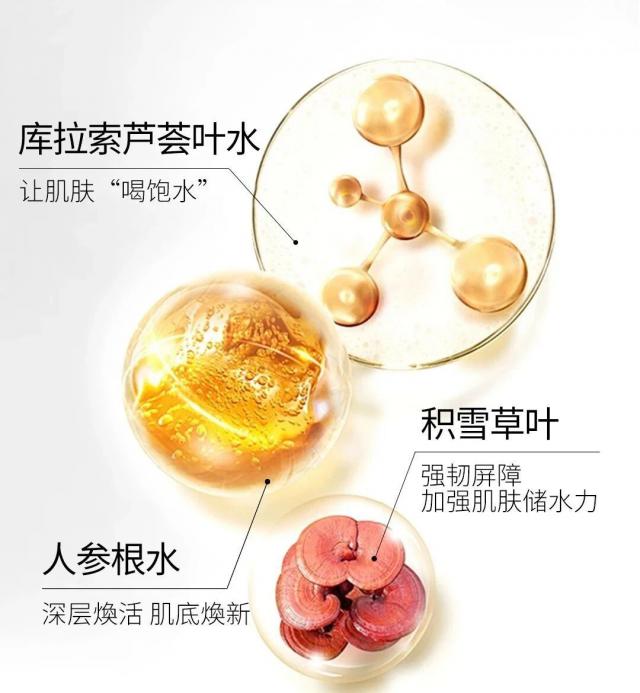 人参根水改善皮肤弹性,添加了积雪草叶提取物,可以强化皮肤屏障,给我们经常卸妆上妆的脸蛋一些保护。